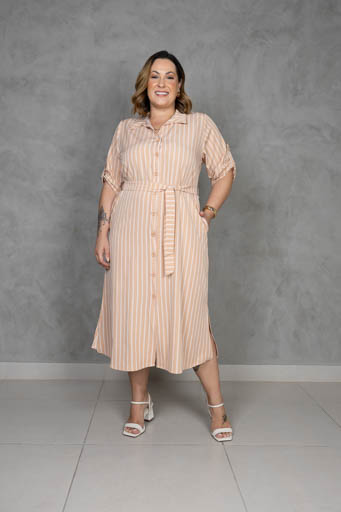 Chemise Spandex Listrado Martingale Manga Plus Size