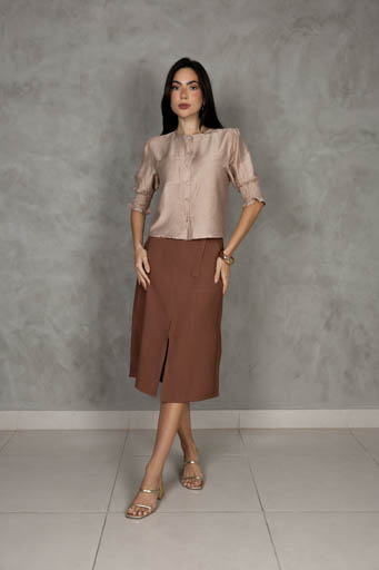 Blusa Rayon Pala Frente Pregas Manga 3/4