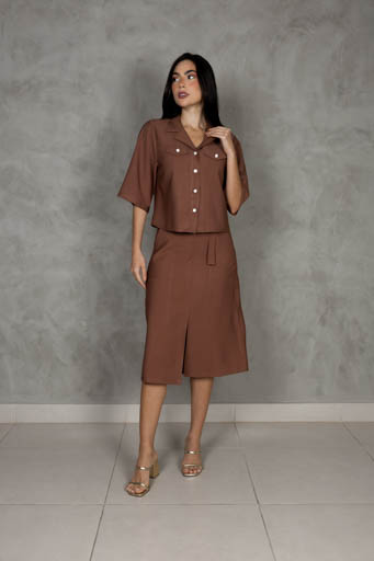 Blusa Rayon Botões Manga Curta Bufante Bolso