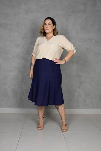 Blusa Crepe Pala Decote Manga 3/4 Martingale Plus Size