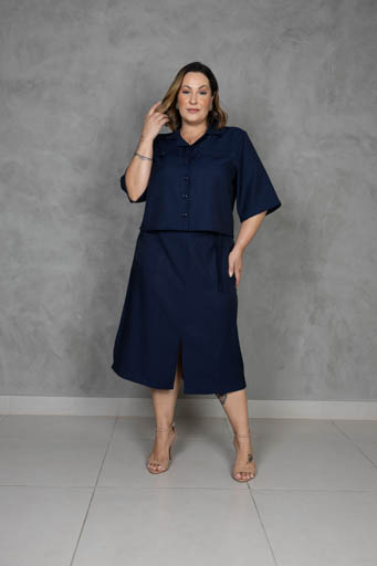 Camisa Linho Manga 7/8 Martingale Plus Size