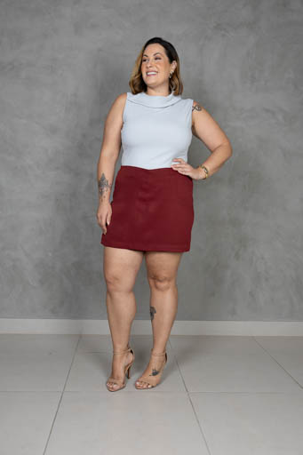 Blusa Malha Tomara que Caia Barra Assimétrica Fenda