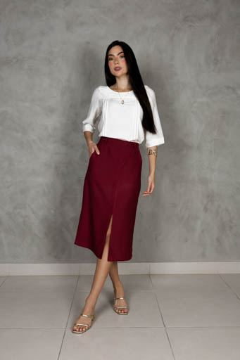 Saia Alfaiataria Detalhe Elástico Bolso Frente Cinto Fenda