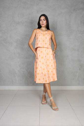 Saia Midi Cotton Bordado Evasê