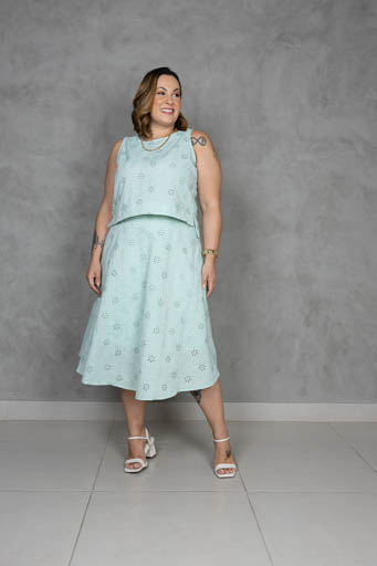 Saia Midi Cotton Bordado Evasê Plus Size
