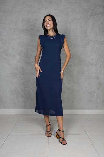Vestido Midi Malha Texturizada Pala Cava